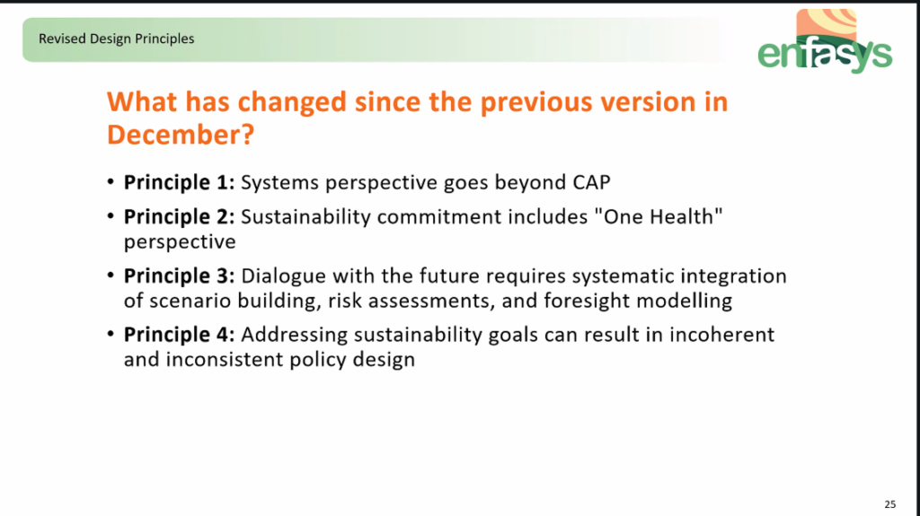 The workshops brought together experts in EU food and agricultural policy to discuss ten policy design principles developed through ENFASYS policy co-design processes with farmers and stakeholders across ten European case studies. The aim was to assess the relevance of these principles in the context of ongoing CAP post-2027 reform discussions.